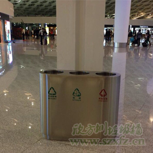 機場購買的不銹鋼垃圾桶有兩種規(guī)格分別為:①585*275*650mm;②760*380*800mm。采用的是不銹鋼材料制作而成的,堅固難用且好看,絕對是一款值得購買的垃圾桶,放置在機場,與機場環(huán)境相適應(yīng),最是適合汽車站,機場,商場等地方。