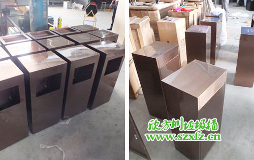 作為一家酒店,采購不銹鋼垃圾桶要求極高。垃圾桶的選擇不容馬虎,兩者搭配得融入酒店的文化氣息。我們欣方圳公司業(yè)務部人員,根據(jù)酒店的特色給他推薦了一款C60方形不銹鋼果皮箱。洽談中對方對我們此款垃圾桶很是滿意,只不過顏色需要改善。我們設計師在對方的提議中,為他把顏色改為了土豪金色,高端大氣,上層次。本款采購的不銹鋼果皮箱規(guī)格為:350*350*680mm,方形設計,采用304#優(yōu)質(zhì)砂光不銹鋼材料模壓成型,金屬亮澤,高雅美觀跟酒店搭配在一起,可謂是天作地和一對。