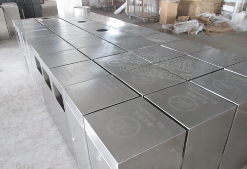 作為一家知名購(gòu)物中心,采購(gòu)不銹鋼垃圾桶要求極高。垃圾桶的選擇不容馬虎,兩者搭配得融入購(gòu)物中心文化。我們欣方圳公司業(yè)務(wù)部人員,根據(jù)包頭茂業(yè)百貨來(lái)的圖樣,大規(guī)模的生產(chǎn)一款C60不銹鋼果皮箱。本款采購(gòu)的不銹鋼果皮箱規(guī)格為:350*350*720mm,顏色為砂光。采用201#不銹鋼厚度1.2mm,其中8個(gè)帶煙灰缸,42個(gè)不帶煙灰缸,內(nèi)桶為鍍鋅板。正面蝕刻茂業(yè)百貨字樣及標(biāo)識(shí)。此款不銹鋼垃圾桶頂上開(kāi)門(mén),頂上蓋子固定活動(dòng)。外部光滑明亮,簡(jiǎn)單大方的方形設(shè)計(jì),高貴不失風(fēng)度。結(jié)合包頭茂業(yè)百貨購(gòu)物中心,讓更多的顧客有愉快的心情購(gòu)物。