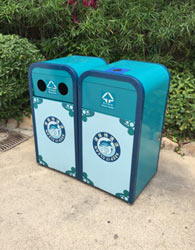 由于欣方圳垃圾桶廠家該款鋼制垃圾桶訂單的產(chǎn)品是鍍鋅鋼板材質(zhì),大大增加了產(chǎn)品的使用壽命,根據(jù)客戶(hù)的要求,該產(chǎn)品采用靜電噴涂工藝,使桶身表面的漆料牢牢吸附, 漆料方面更是選用了防水,防腐,耐高溫的材料,更是增加了該產(chǎn)品的耐用性。桶身投口采用內(nèi)推蓋的設(shè)計(jì),不僅僅美觀,更是防止蚊蠅的滋生。方便了垃圾的存放,由于該桶為兩個(gè)單桶組合在一起,桶身上由專(zhuān)業(yè)的設(shè)計(jì)人員設(shè)計(jì)公司的圖案,不僅僅突出了公司的標(biāo)識(shí),更使得產(chǎn)品更加美觀。