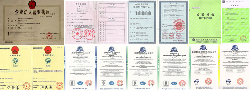 欣方圳營業(yè)執(zhí)照、稅務(wù)登記證、組織機構(gòu)代碼證,垃圾桶檢驗報告資質(zhì),“欣方圳”注冊商標(biāo),信息安全管理、知識產(chǎn)權(quán)管理、ISO9001:2015、ISO14001:2015、OHSAS18001認(rèn)證企業(yè)