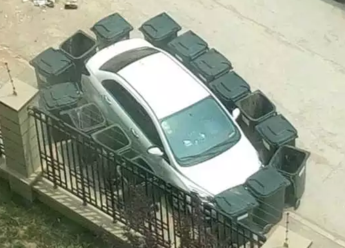 據(jù)介紹,停車(chē)處是放置小區(qū)垃圾桶的位置,私家車(chē)在此停放時(shí)垃圾桶較少,而等其他垃圾桶運(yùn)來(lái)時(shí)只得放在路邊,小區(qū)保潔人員多次撥打車(chē)主電話無(wú)人接聽(tīng)。當(dāng)天中午,垃圾清運(yùn)車(chē)倒完垃圾后,垃圾桶因無(wú)處可放擺在了私家車(chē)周?chē)?