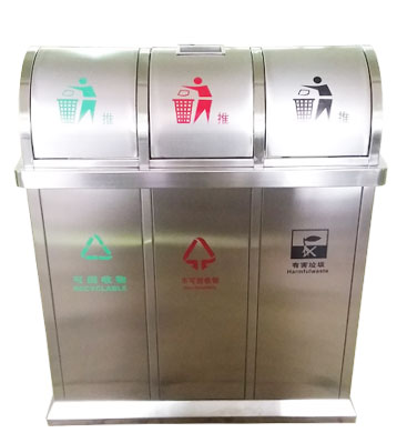 深圳新標(biāo)準(zhǔn)城中村街道社區(qū)不銹鋼五分類垃圾桶由有害垃圾、玻璃、金塑紙(為金屬、塑料、紙張的簡稱)、廚余垃圾、其他垃圾這5分類不銹鋼垃圾桶組合而成。其中金塑紙、其他垃圾日常產(chǎn)生量較大,所以分類收集容器也