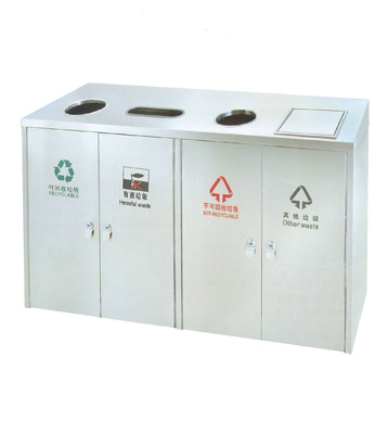 深圳新標(biāo)準(zhǔn)城中村街道社區(qū)不銹鋼五分類垃圾桶由有害垃圾、玻璃、金塑紙(為金屬、塑料、紙張的簡(jiǎn)稱)、廚余垃圾、其他垃圾這5分類不銹鋼垃圾桶組合而成。其中金塑紙、其他垃圾日常產(chǎn)生量較大,所以分類收集容器也