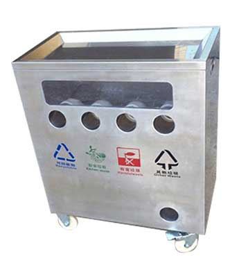 小區(qū)垃圾分類站點(diǎn)四類垃圾分類垃圾桶,不銹鋼無疑是較為理想的材質(zhì)。它戶外防銹蝕效果好,表面金屬光澤高檔美觀,污漬也易清理。不銹鋼分類桶產(chǎn)品款式造型易定制,不受尺寸大小限制,滿足個(gè)性化需求,擺放于惠