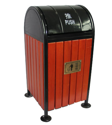 G11推蓋鋼木單桶垃圾桶