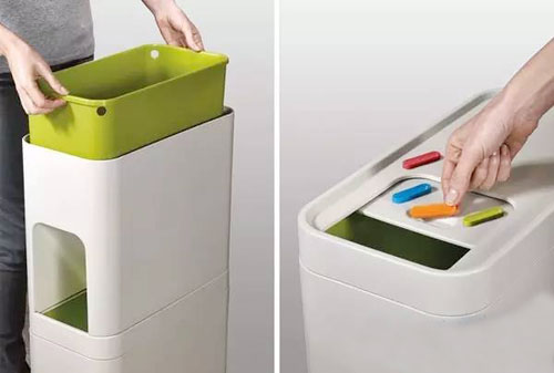 Stack 是一套廚房分類(lèi)垃圾箱,是倫敦設(shè)計(jì)工作室PearsonLloyd 專(zhuān)門(mén)為廚具品牌設(shè)計(jì)的。這款垃圾箱是工作室的第三代垃圾箱,針對(duì)人們依舊使用一次性塑料袋的習(xí)慣,在細(xì)節(jié)上做了改進(jìn),且節(jié)省空間。