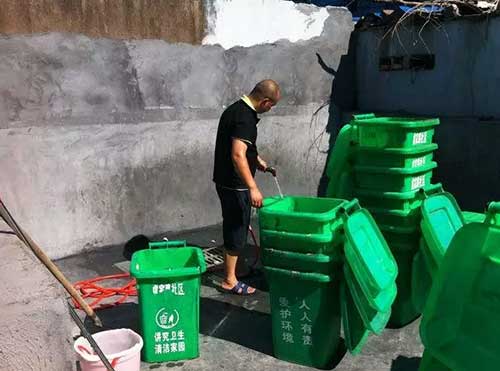 該垃圾桶清洗點選在小區(qū)廢棄操場的一角,原本被居民作為停車場,現(xiàn)在劃出10平方米鋪設(shè)排水管道,裝了壓水泵,還請了一名清潔人員專門負責(zé)清洗垃圾桶.接下去,金棉小區(qū)和虞家路農(nóng)村片近200個垃圾桶,將三天“洗一次澡”。此外,眉山、陽明、金山等社區(qū)“洗澡池”也已“營業(yè)”。