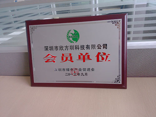 2013年9月,經(jīng)過深圳市綠色產(chǎn)業(yè)促進(jìn)會的審核批準(zhǔn),欣方圳科技榮獲“深圳市綠色產(chǎn)業(yè)促進(jìn)會會員單位”殊榮。
