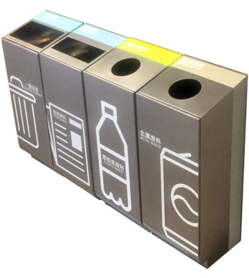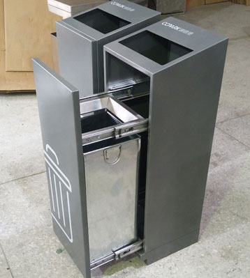 欣方圳商場不銹鋼室內(nèi)滑軌四分類果皮箱批量生產(chǎn)圖