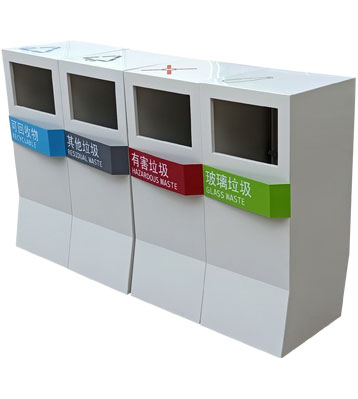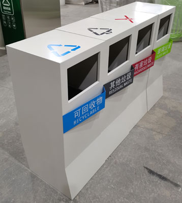 欣方圳不銹鋼四分類果皮箱組裝擺放圖