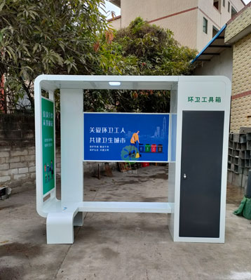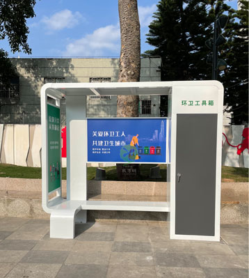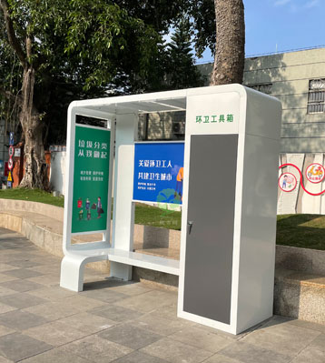 深圳大浪街道這款環(huán)衛(wèi)工人休息歇腳亭,由大浪街道黨工委決定由街道市政中心牽頭設(shè)計,集環(huán)衛(wèi)工具箱和休息座椅實用性功能于一體,欣方圳工廠生產(chǎn)...