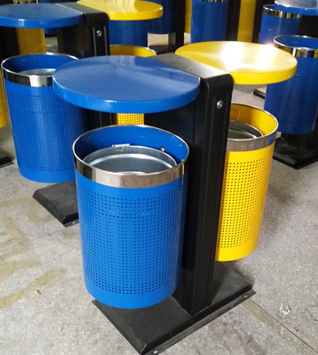 欣方圳戶外鋼板分類垃圾桶工廠批量生產(chǎn)圖