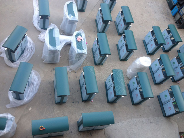 欣方圳戶外鋼板分類垃圾桶!